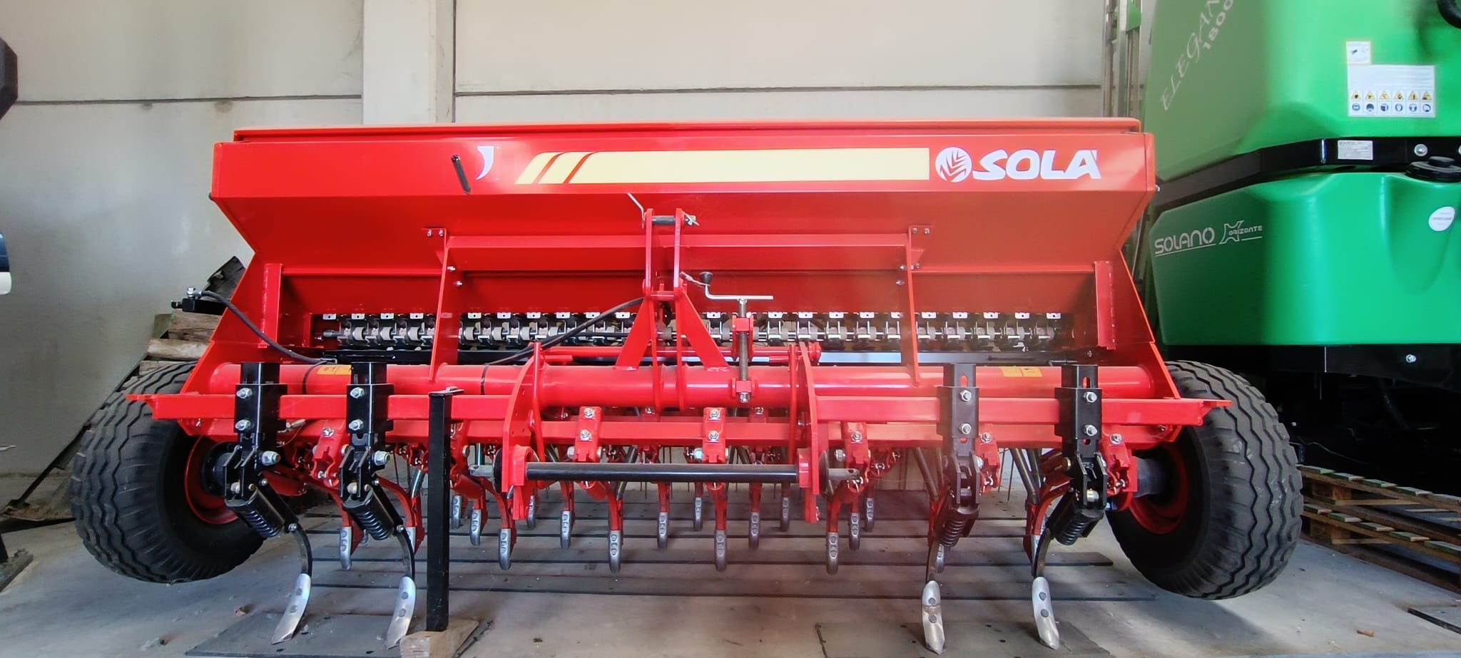 Sembradora SOLA de 3 m.de siembra, reja recta, capacidad tolva 600 Kg, fecha fabricacion 2017, fecha compra 2018, con borra huellas.